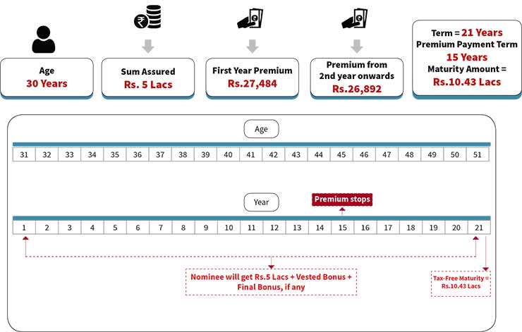 • The customer gets the tax-free maturity under this plan which includes the bonus also along with Sum Assured