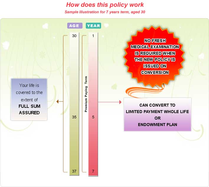 • Flexibility : Option to convert to an endowment or whole life plan, when funds are available
