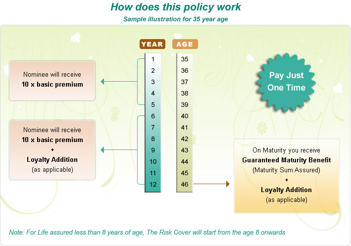 For life assured below 8 years age, risk cover will start age 8 years onward.